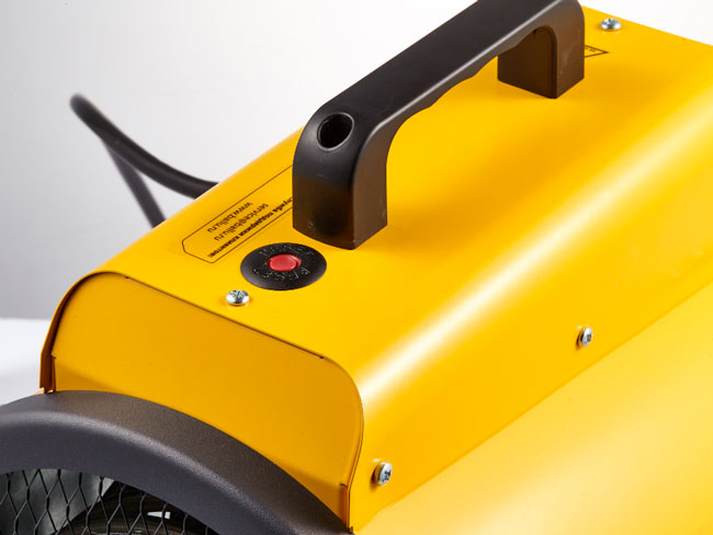 Функция ручного перезапуска препятствует автоматическому запуску пушки после срабатывания защитного термостата. Пушка отключается и не включается повторно до устранения причины перегрева. Для снятия блокировки и дальнейшей эксплуатации пушки необходимо нажать на кнопку сверху корпуса.